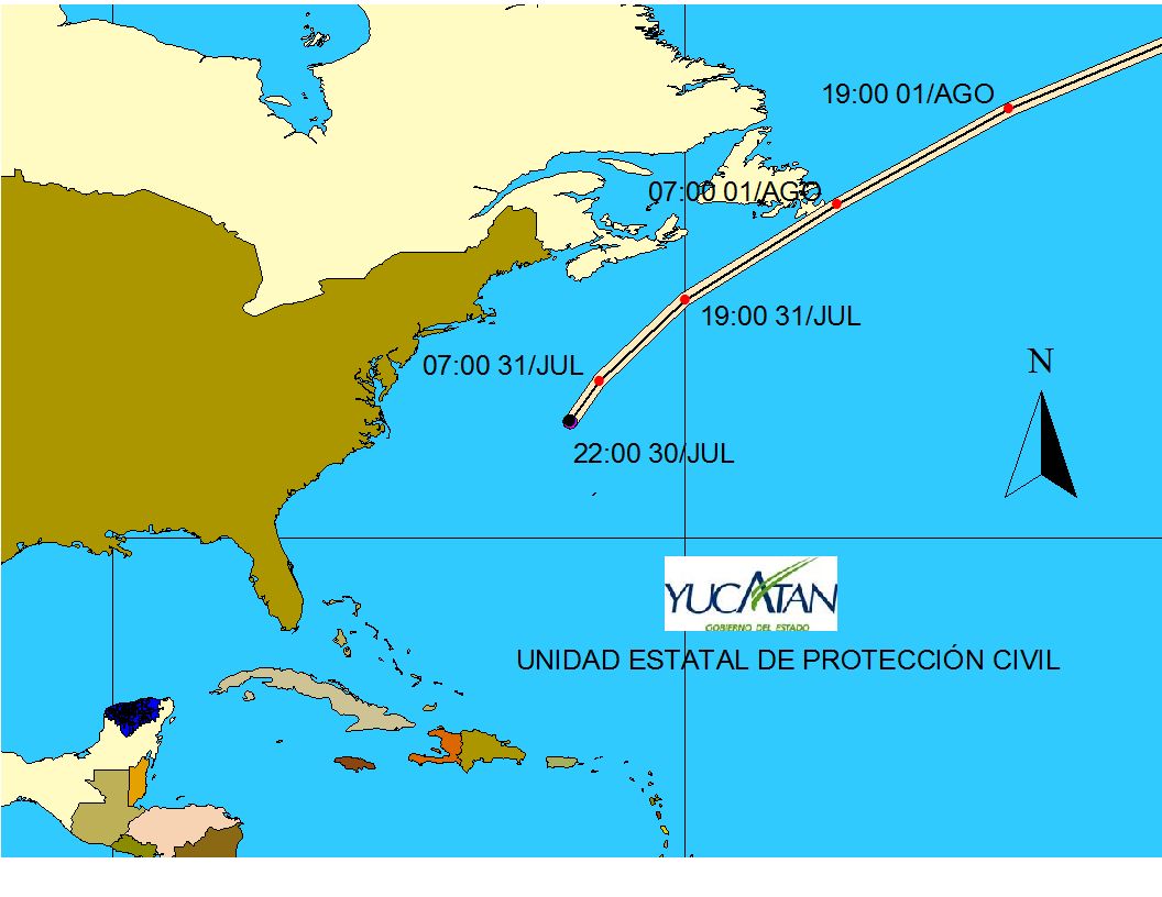Distancia del centro de la depresión tropical al Estado de Yucatán: 2,651 Kms. de San Francisco, Tizimín