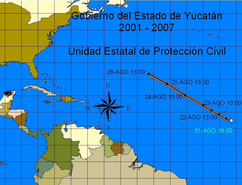 Ésta tarde se formó la Depresión Tropical No. 4 del Océano Atlántico, actualmente se encuentra a 405 Km. al Sureste de las Islas de Cabo Verde, moviéndose hacia el Oeste-Noroeste con una velocidad de traslación de 19 Km/h, vientos máximos sostenidos de 55 Km/h y rachas de hasta 75 Km/h.
