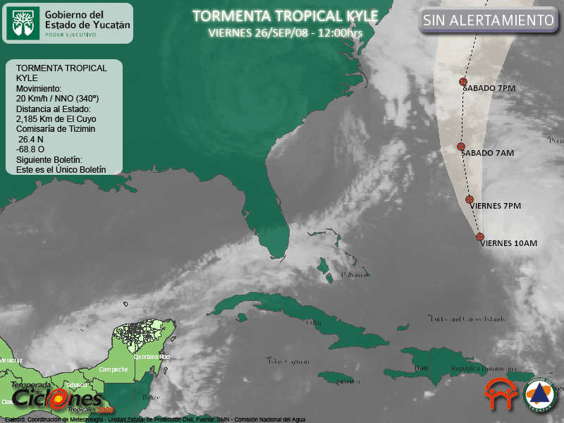 La Tormenta Tropical Kyle no representa riesgo para la entidad y este será el único Boletín emitido por la Unidad Estatal de Protección Civil.