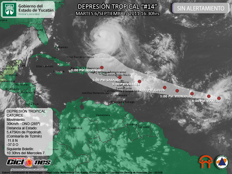 Por el momento no hay Alertamiento para el Estado de Yucatán en el marco del Sistema de Alerta Temprana para Ciclones Tropicales SIAT-CT.