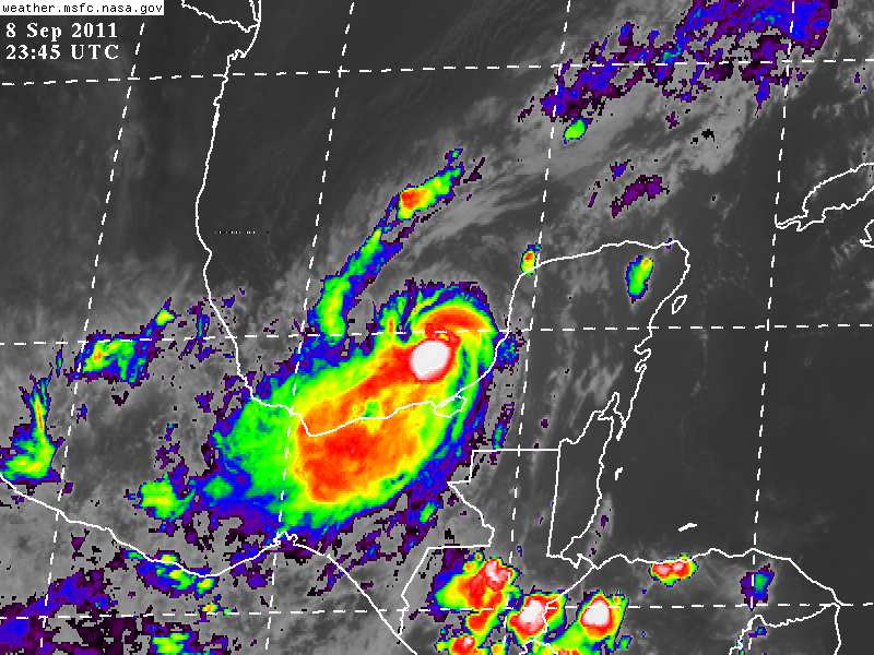 La Tormenta Tropical Nate con un movimiento estacionario sobre la Sonda de Campeche con vientos sostenidos de 110Km/h y rachas de hasta 140Km/h.