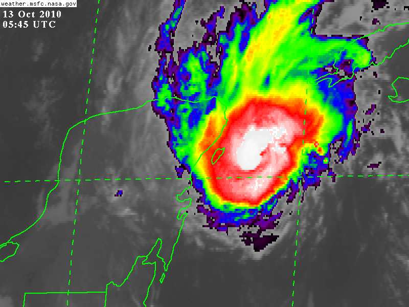 Paula se desplaza frente a las Costas de Quintana Roo, su Centro se estima a 85Km al Este de Cozumel y a 105Km al Este-Sureste de Cancún, Quintana Roo, continúa como un huracán de Categoría II en la Escala Saffir Simpson, con vientos de 160Km/h y rachas de hasta 195Km/h.