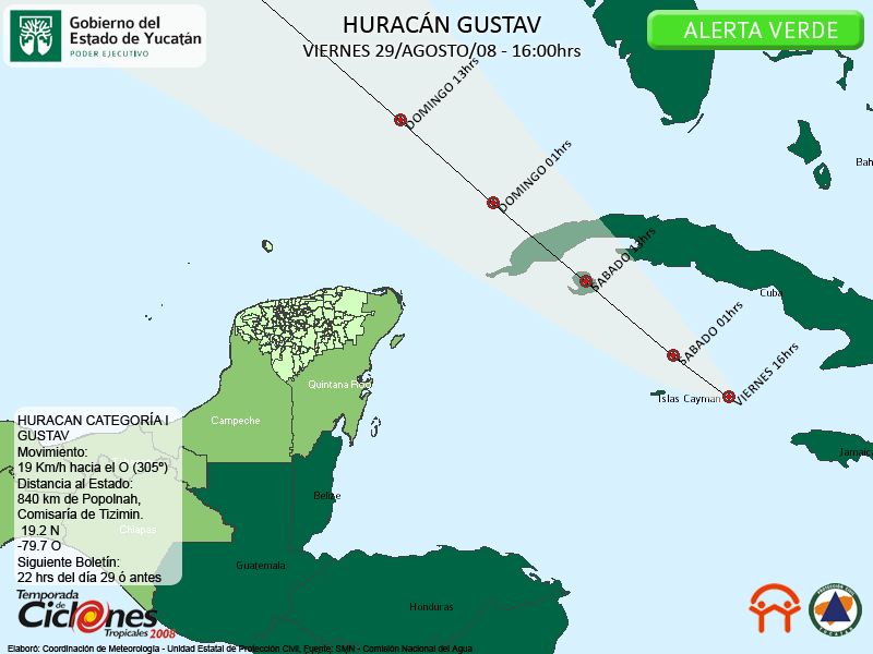 Como se habia pronosticado Gustav es nuevamente un Huracán Categoría uno en la Escala Saffir Simpson, mientras ha mejorado su organización y se desplaza hacia el Noroeste.