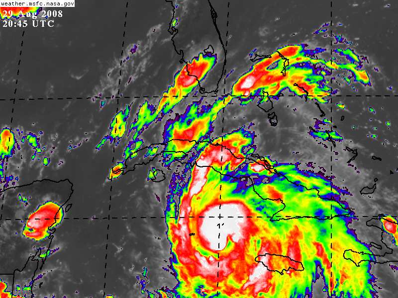 El Centro de Gustav pasará cerca de las Islas Cayman esta noche mietras continúa su aproximación al oeste de Cuba.