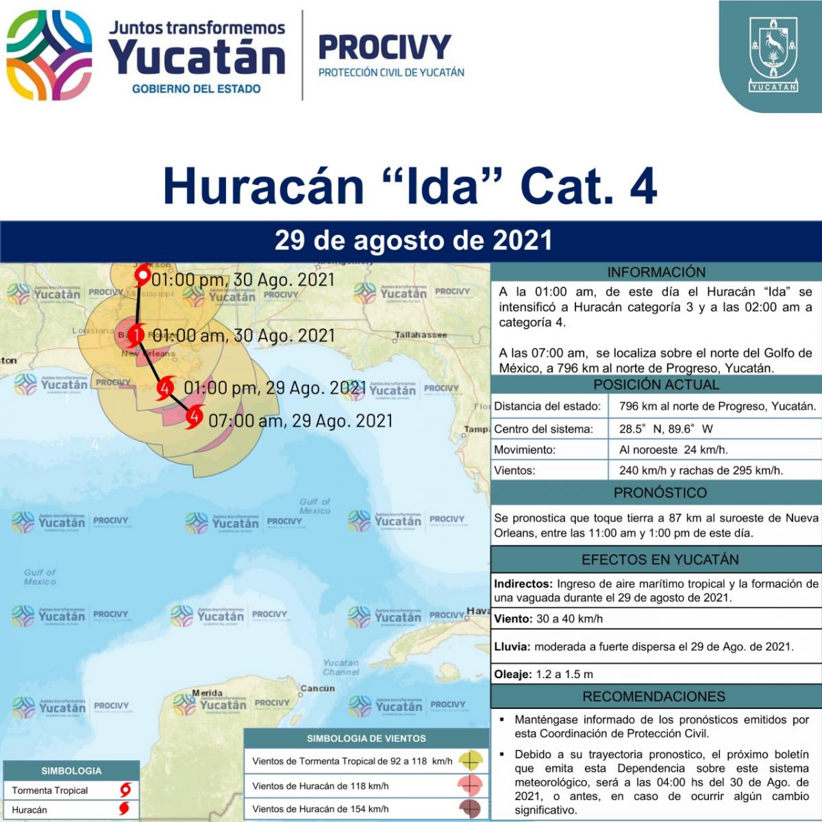 El Huracán Ida se intensificó a categoría 4, se localiza sobre el norte del Golfo de México.