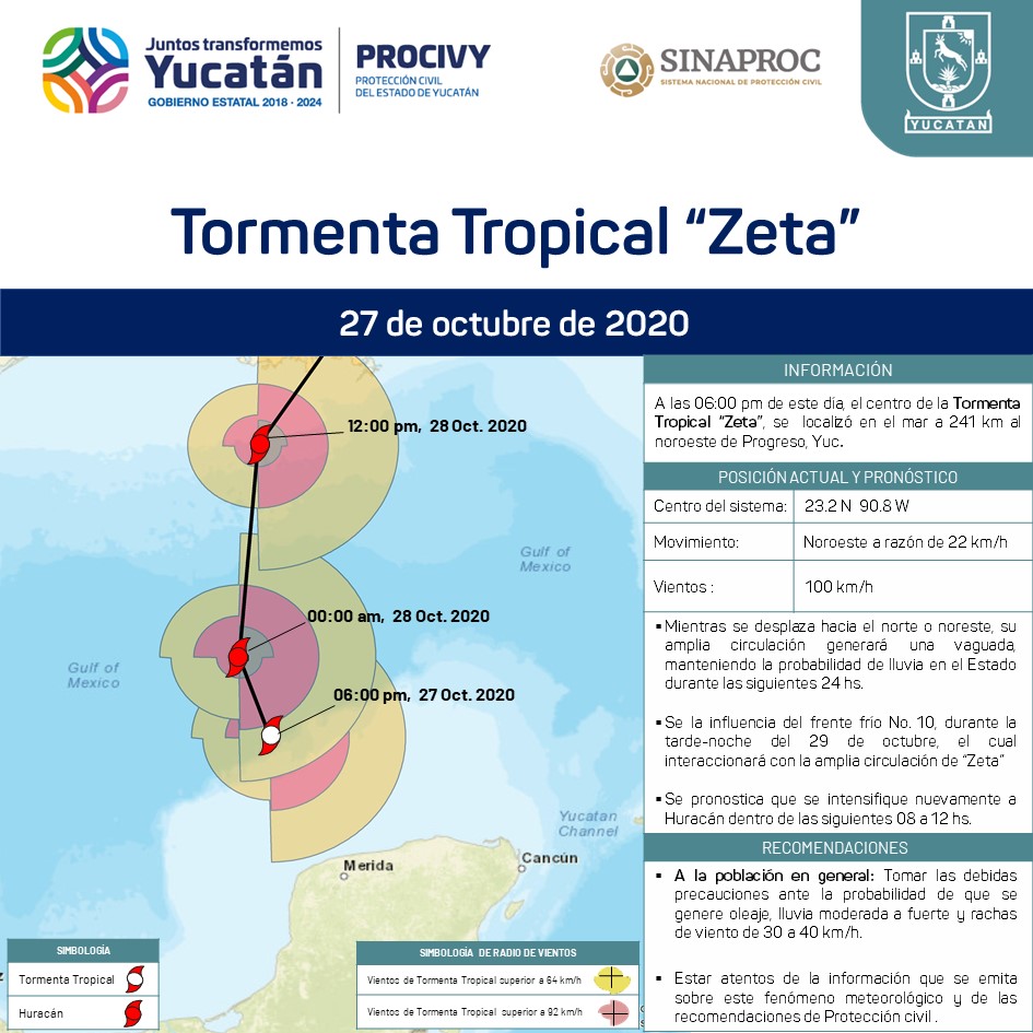 La Tormenta Tropical Zeta, se localiza en el mar a 241 km al noroeste de Progreso.