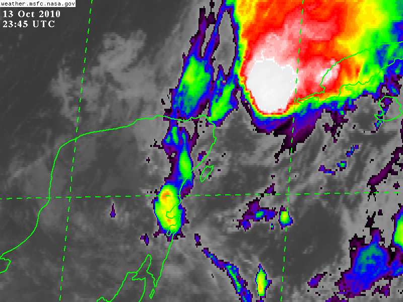 Los vientos de Tormenta Tropical continúan extendiendose hasta 75Km del Centro del Sistema, por lo que los vientos de Tormenta se encuentran a 140Km de El Cuyo, Comisaría de Tizimin.