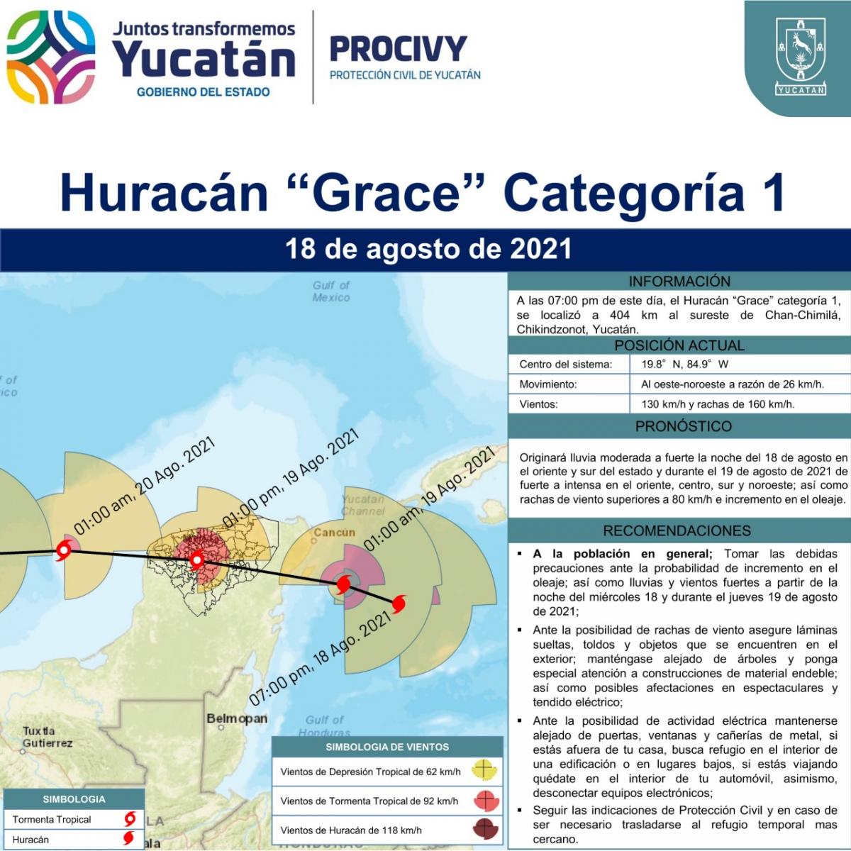 El Huracán Grace categoría 1, se localiza a 404 km al sureste de Chan-Chichimilá, #Chikindzonot, Yucatán.