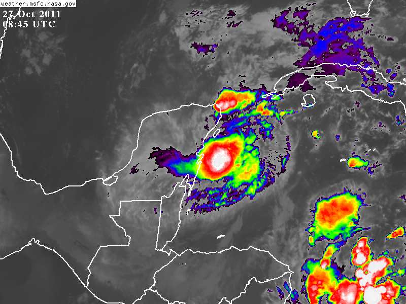 Condiciones atmosféricas aparentan ser poco favorables para desarrollo durante las próximas horas, por el contrario el Huracán podría convertirse en una Tormenta Tropical antes de que el Centro del Sistema alcance las Costas del vecino estado de Quintana Roo.
