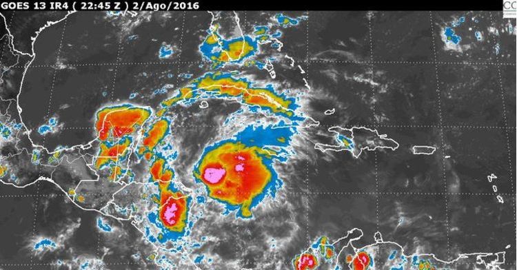 LA TORMENTA TROPICAL EARL CON INCREMENTO DENTRO DE SU CATEGORÍA, CONTINUA SU DESPLAZAMIENTO HACIA EL OESTE APROXIMÁNDOSE A TERRITORIO NACIONAL, SUS BANDAS NUBOSAS EXTERIORES FAVORECEN AL INCREMENTO DE POTENCIAL DE LLUVIAS DE FUERTES A MUY FUERTES(50 A 75MM) SOBRE LA PENÍNSULA DE YUCATÁN Y EL NORTE DE CHIAPAS, VIENTO FUERTE EN LAS INMEDIACIONES DEL SISTEMA Y OLEAJE ELEVADO EN LAS COSTAS DE QUINTANA ROO.