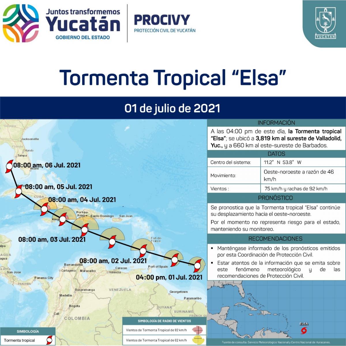 La Tormenta Tropical "Elsa", se ubica a 660 km al este-sureste de Barbados.
