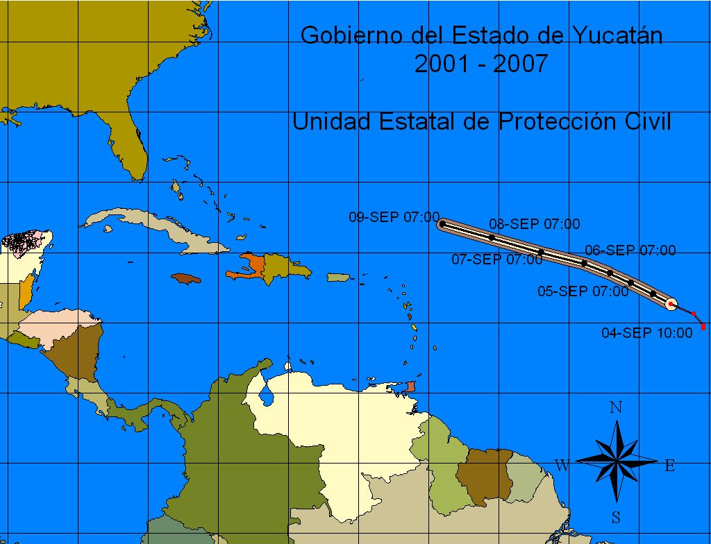 Distancia del centro de la depresión tropical al Estado de Yucatán: 4,742 Kms. de San Arturo, Tizimín