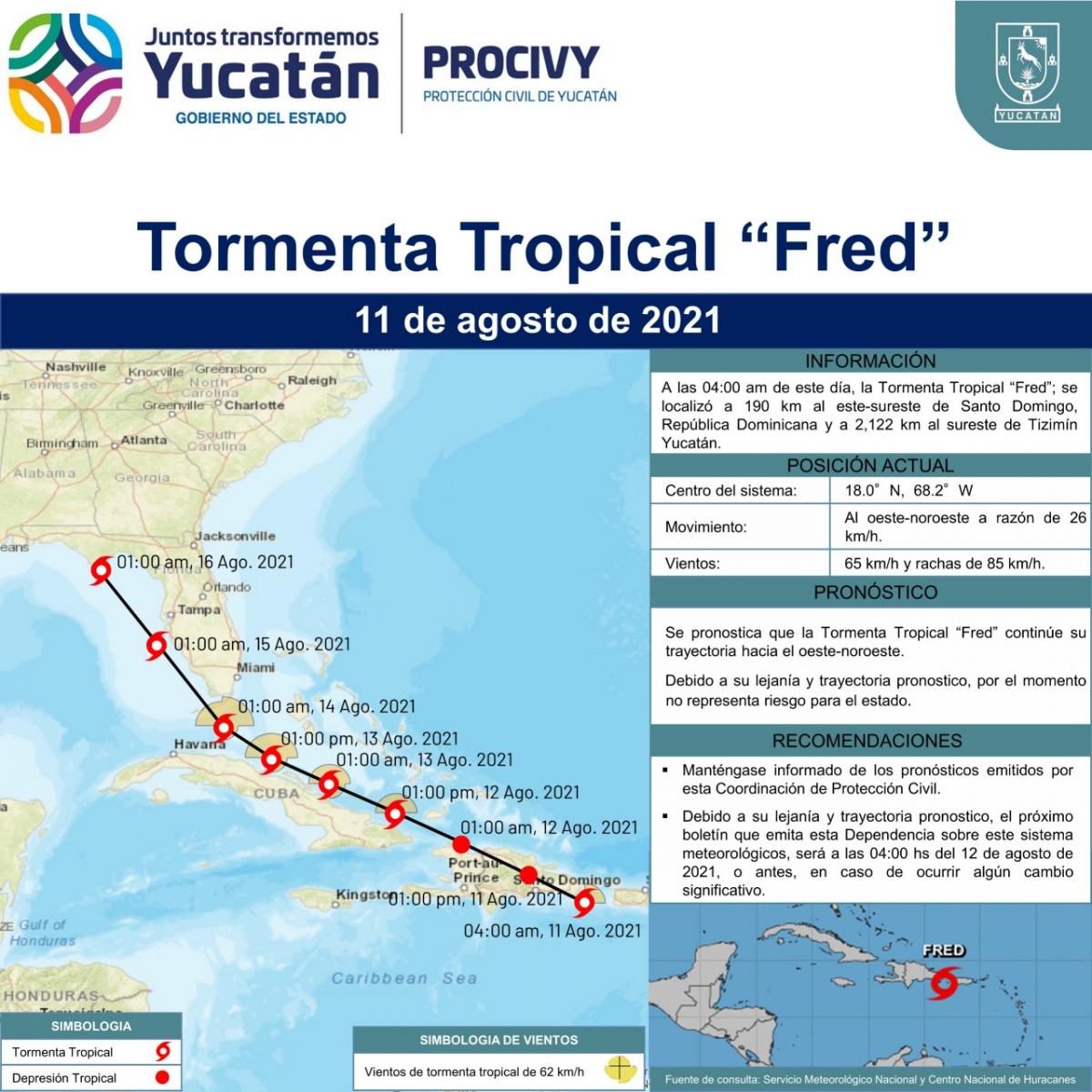 Debido a su lejana ubicación y pronóstico de trayectoria, por el momento no representa riesgo para Yucatán.