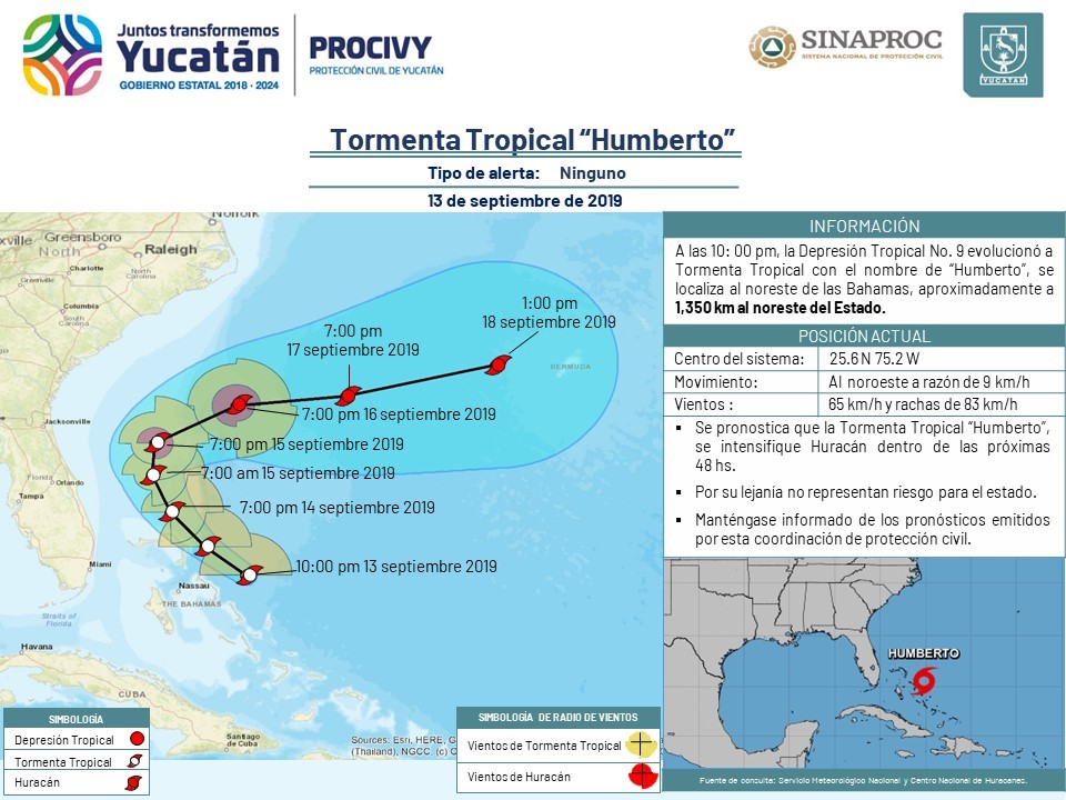 La Depresión Tropical No. 9 evolucionó a Tormenta Tropical "Humberto".