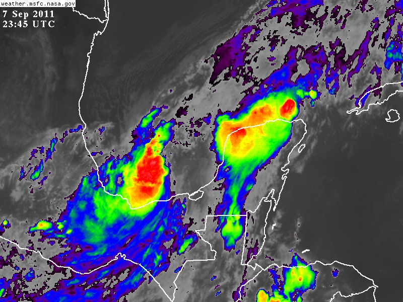 A pesar de lo anterior, la Circulación asociada a la Tormenta Tropical continúa ocasionando fuertes lluvias en la Península de Yucatán, situación evidente en imágenes de Satélite y reportes Municipales a la Unidad Estatal de Protección Civil.
