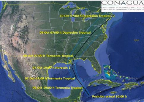 La Tormenta Tropical "NATE", sobre el noroeste del Mar Caribe, se ha acelerado y se desplaza hacia el nor-noroeste rumbo al Canal de Yucatán.