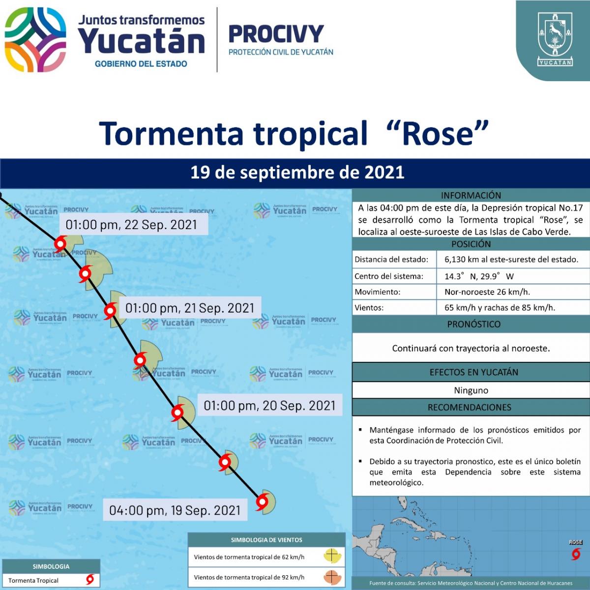 La Depresión Tropical No.17 se desarrolló a Tormenta Tropical Rose y se localiza al oeste-suroeste de Las Islas de Cabo Verde, África.
