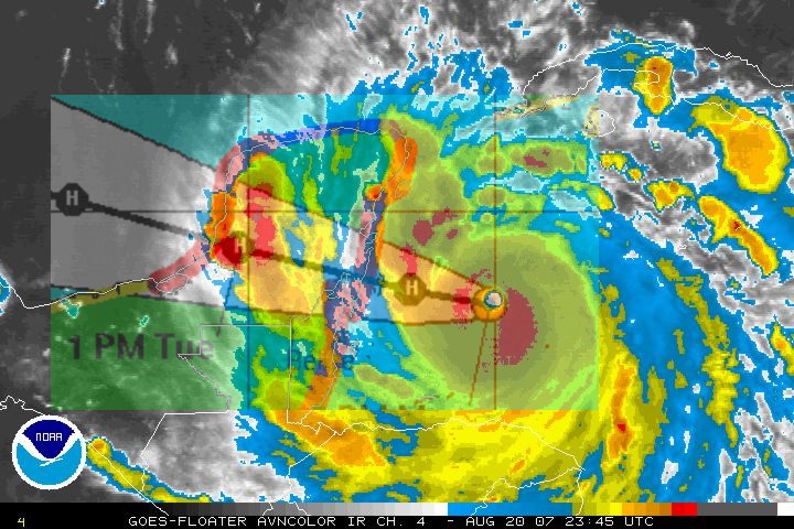 Alerta por lluvia en toda la Península de Yucatán, y alerta máxima por efecto de huracán desde Cancún hasta Chetumal Qroo. y desde Progreso Yucatán a hasta Ciudad del Carmen Campeche. Alerta preventiva desde Ciudad del Carmen Camp. hasta Veracruz, Ver.