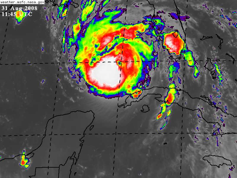 Gustav se debilita un poco, se encuentra como Categoría 3 en la Escala Saffir Simpson.
