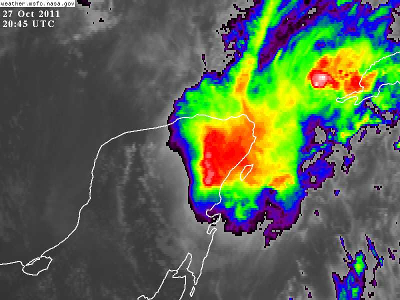 La posición de Rina es estimada a las 13:00hrs locales a 85Kms de Cozumel, Quintana Roo, 105Kms de Punta Laguna en el Oriente de Yucatán.