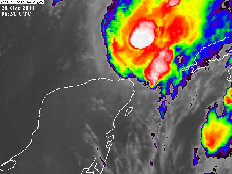 Imágenes de Satélite muestran que la convección y nublados de Rina se encuentran sobre el Golfo de México y el Canal de Yucatán, sin embargo, el centro es ubicado mediante imágenes de radar de Cancún y el Instituto de Meteorología de la República de Cuba gracias a los cuales puede observarse circulación en niveles medios en el área que es estimado el Centro.