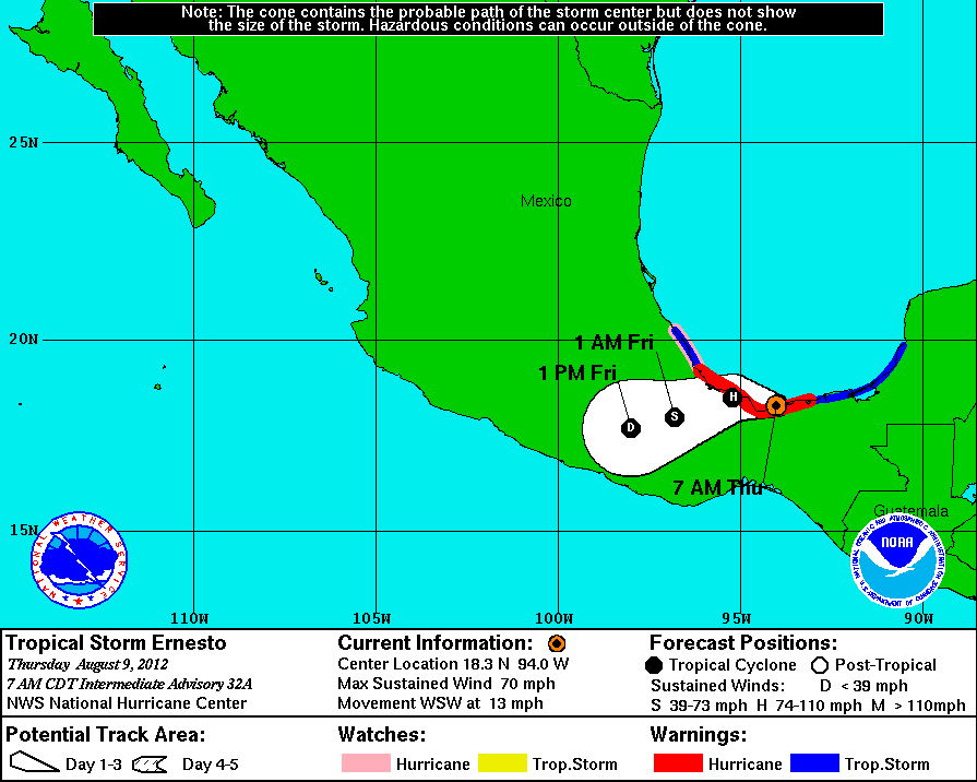 Se espera que Ernesto se desplace sobre Veracruz durante las próximas horas.