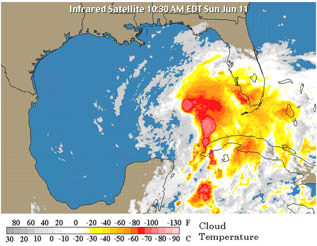 La Depresión Tropical No. 1 se intensificó a Tormenta Tropical "Alberto", actualmente se encuentra a 645 Km. al Oeste de Key West, Florida, moviéndose hacia el Noroeste con una velocidad de traslación de 15 Km/h, vientos máximos sostenidos de 75 Km/h y rachas de hasta 95 Km/h.