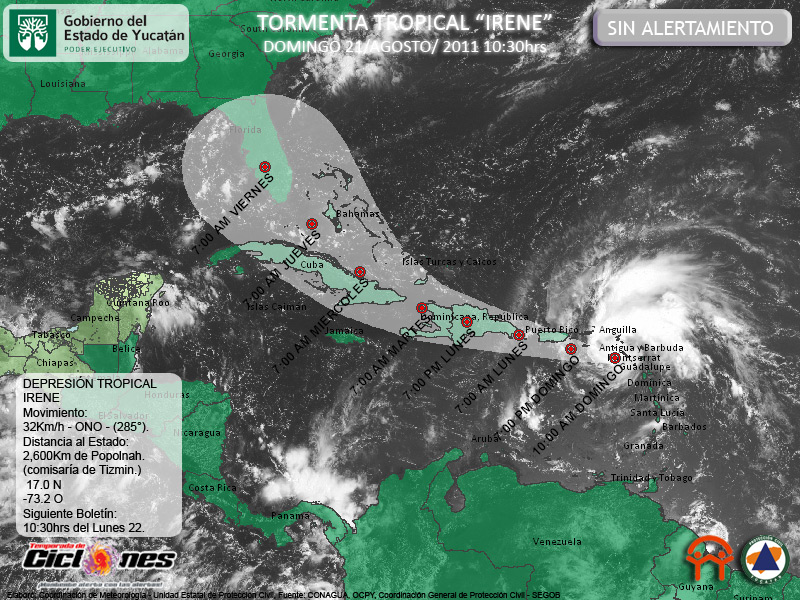 Por el momento el pronóstico planteado considera afectación a la Península de Yucatán, sin embargo debido a su ubicación actual y trayectoria pronóstico hacia el Oeste se mantendrá en estrecho monitoreo.