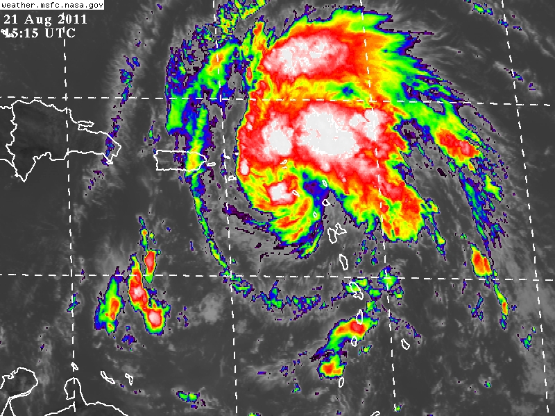 Es posible que la Tormenta Tropical se intensifique a un huracán menor antes de desplazarse sobre Republica Dominicana y Haiti el día de mañana.