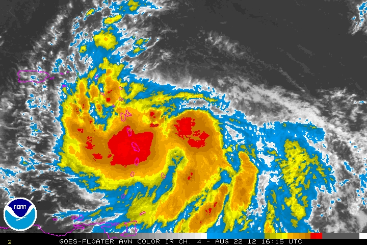 La Tormenta Tropical Isaac se encuentra esta mañana próxima a las Antillas menores, sus bandas de lluvia comienzan a afectar a dichas Islas del Caribe.