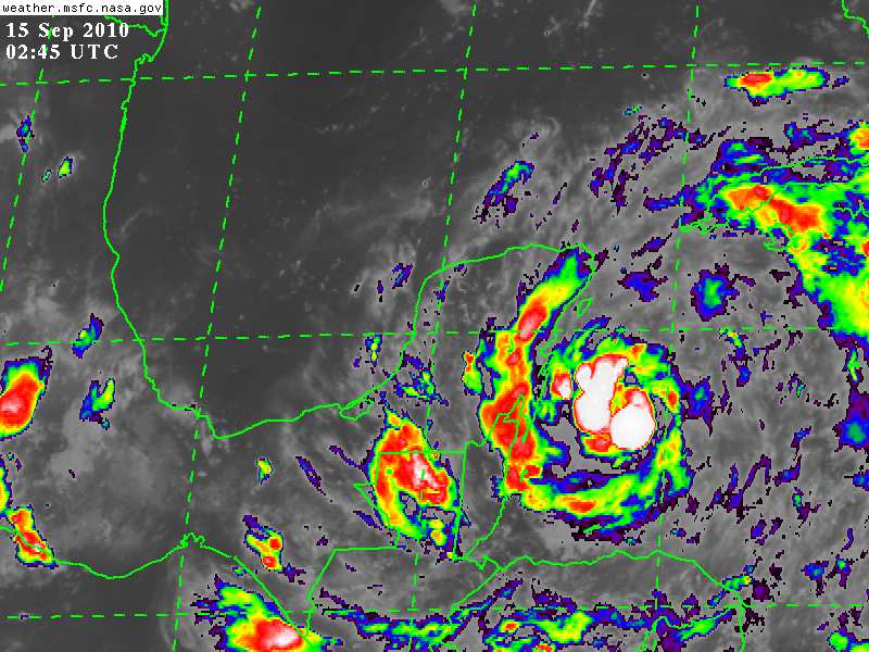 El pronóstico de desplazamiento de Karl, considera que la Tormenta Tropical se desplazará sobre tierra en las inmediaciones de la Bahia del Espiritu Santo mañana por la mañana, para emerger sobre Aguas del Golfo de México las últimas horas de mañana Miercoles ó la madrugada del Jueves 16.