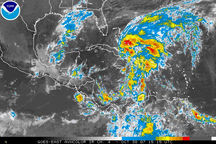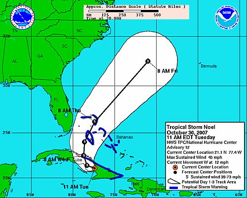 Noel se encuentra sobre Cuba... Por el momento se ha estado moviendo hacia el Oeste... A pesar de observarse una ligera perdida de organización en las imagenes de Satélite, continúa en la Categoría de Tormenta Tropical, se mantiene la alerta azul a manera de prevención.