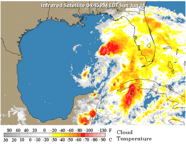 La Tormenta Tropical "Alberto" se encuentra a 605 Km. al Oeste de Key West, Florida, moviéndose hacia el Norte con una velocidad de traslación de 11 Km/h, vientos máximos sostenidos de 75 Km/h y rachas de hasta 95 Km/h.