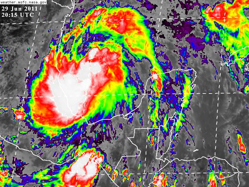 Se espera que el Centro de la Tormenta Tropical se desplace sobre el Norte de Veracruz las últimas horas de hoy Miercoles ó durante la madrugada de mañana Jueves.