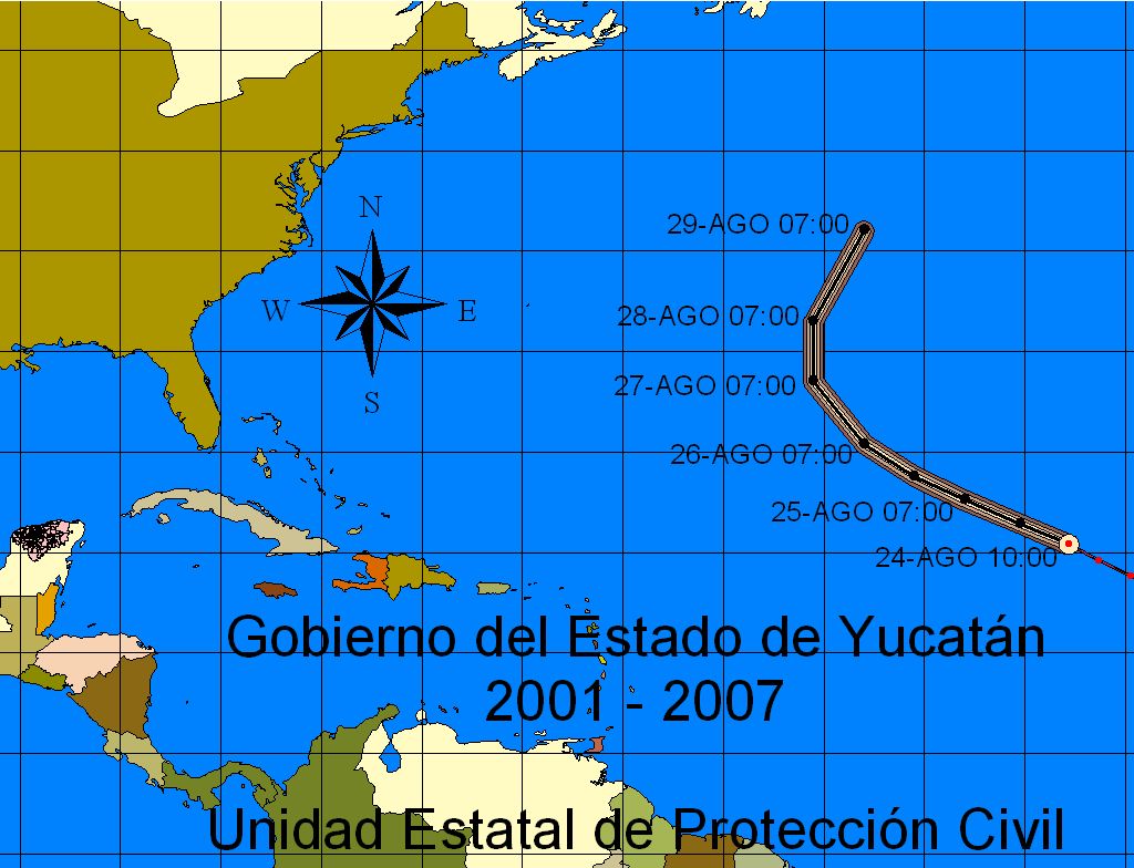 Distancia de los vientos de Tormenta Tropical al Estado: 5,098 Kms. de San Arturo, Tizimín