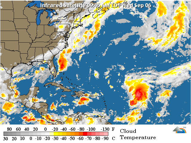 La Tormenta Tropical "Florence" se encuentra a 1,290 Km. al Este de las Antillas Menores, moviéndose hacia el Oeste-Noroeste con una velocidad de traslación de 19 Km/h, vientos máximos sostenidos de 85 Km/h y rachas de hasta 100 Km/h.