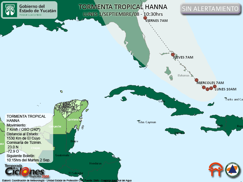 Hanna no representa riesgo para el Estado de Yucatán.