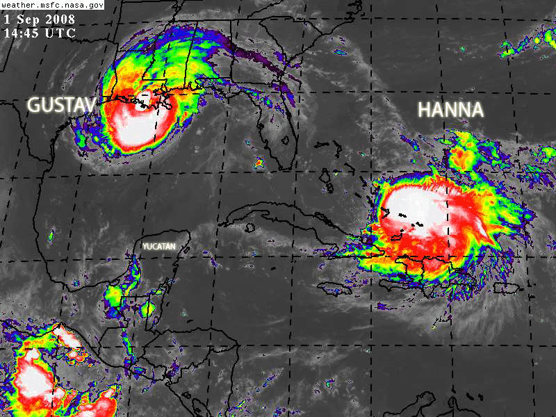 Hanna se encuentra sobre las Bahamas, moviendose muy lentamente hacia el Oeste-Suroeste, se estima a 65Km al Norte de la Isla de Mayaguana, en el Sureste de las Bahamas.