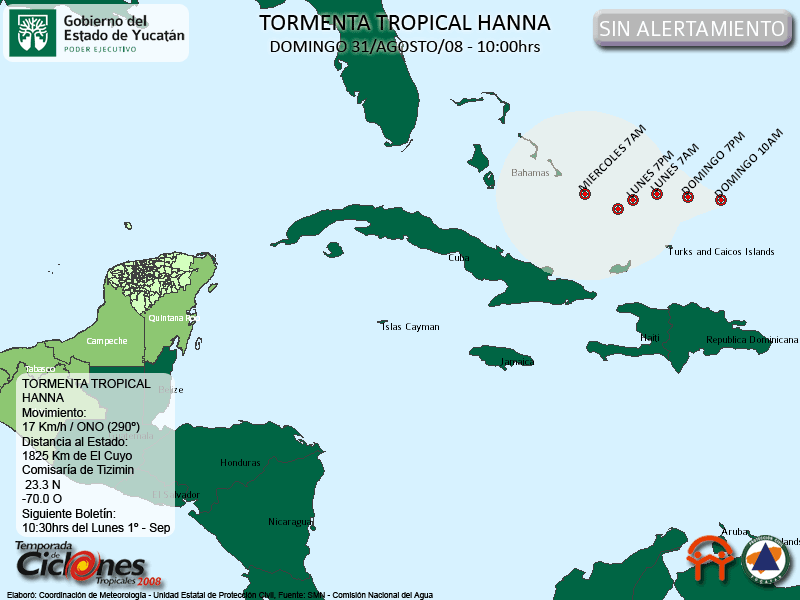 En efecto no se emite ningún Alertamietno para el Estado de Yucatán