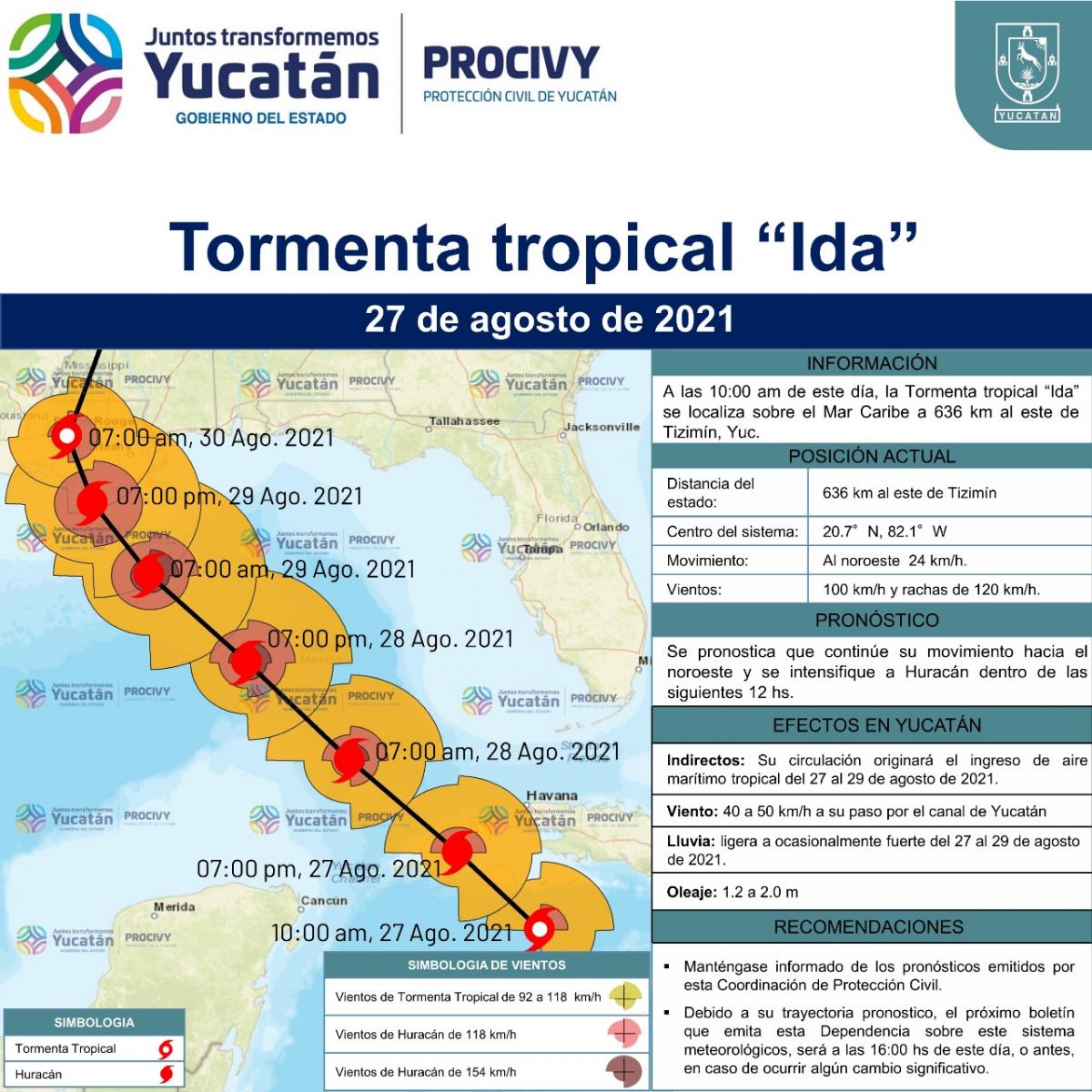 La Tormenta Tropical Ida, se localiza a 636 km al este de Tizimín, Yucatán.