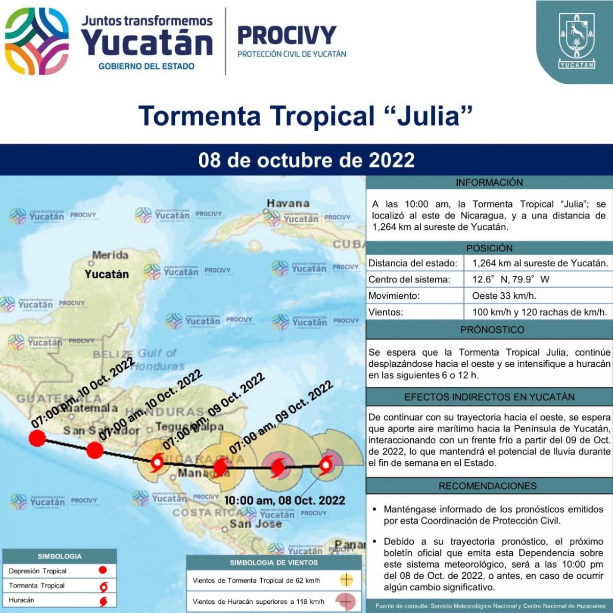 La Tormenta Tropical "Julia"; se localizó al este de Nicaragua.