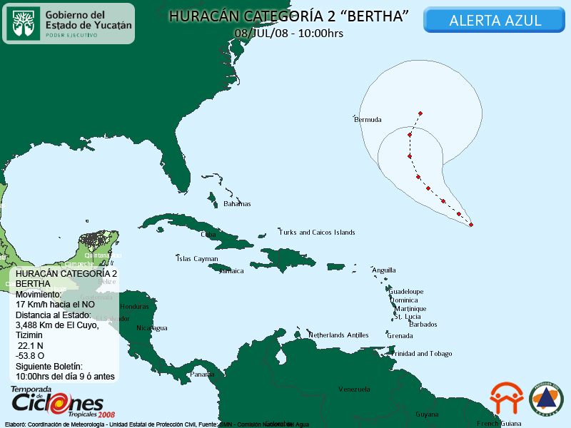 La tarde de ayer el Huracan Bertha al alcanzar la categoría 3 en la Escala Saffir Simpson, se ha convertido en el Primer Huracán intenso de esta Temporada.