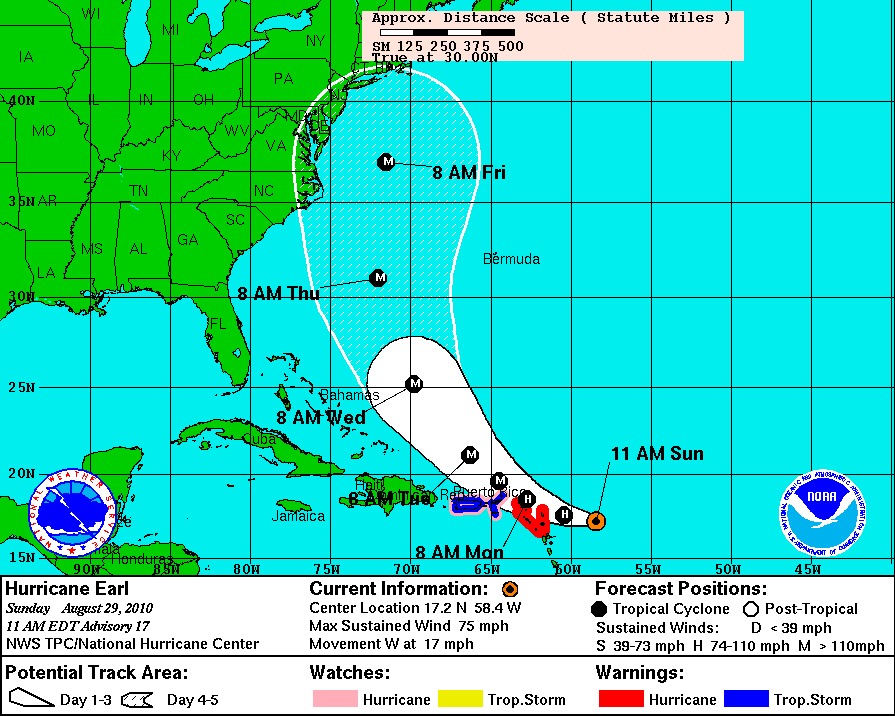 Es posible que Earl continúe intensificandose pudiendo convertirse en un huracán de Categoría III los próximos días.