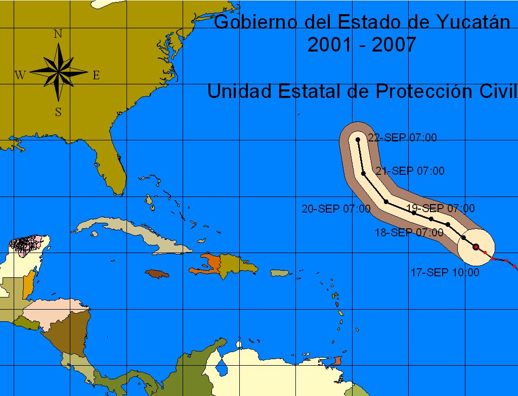 Distancia del centro del huracán al Estado de Yucatán: 3,999 Kms. de San Arturo, Tizimín