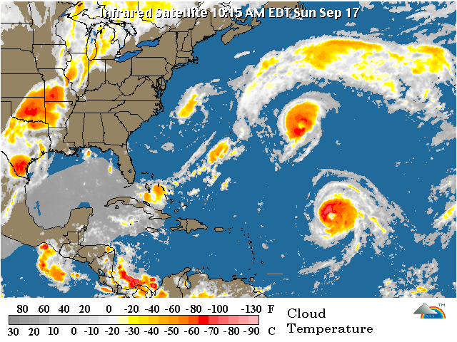 El Huracán "Helene", ahora de categoría 2, se encuentra a 1,500 Km. al Este-Noreste de las Antillas Menores, moviéndose hacia el Noroeste con una velocidad de traslación de 17 Km/h, vientos máximos sostenidos de 165 Km/h y rachas de hasta 205 Km/h.