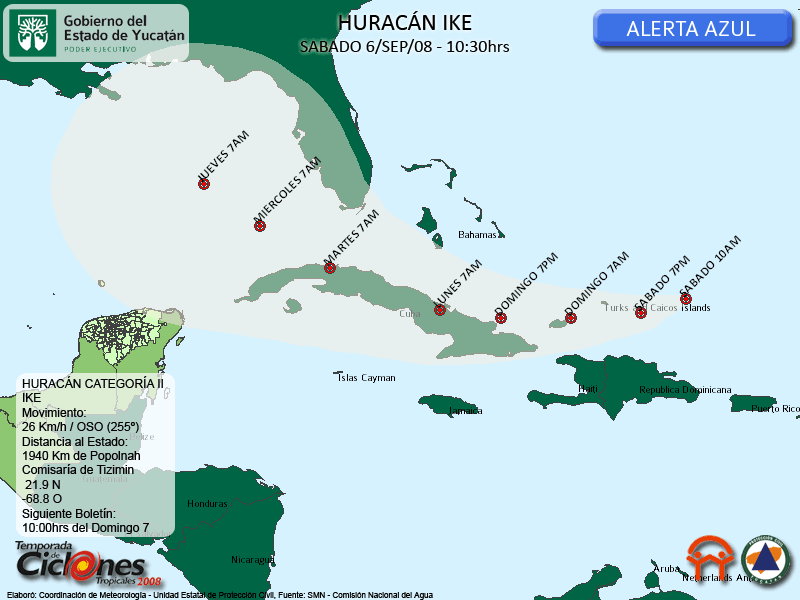 La Trayectoria pronóstico de IKE a variado un poco durante el día de hoy, por lo que se mantendrá en estrecho monitoreo.