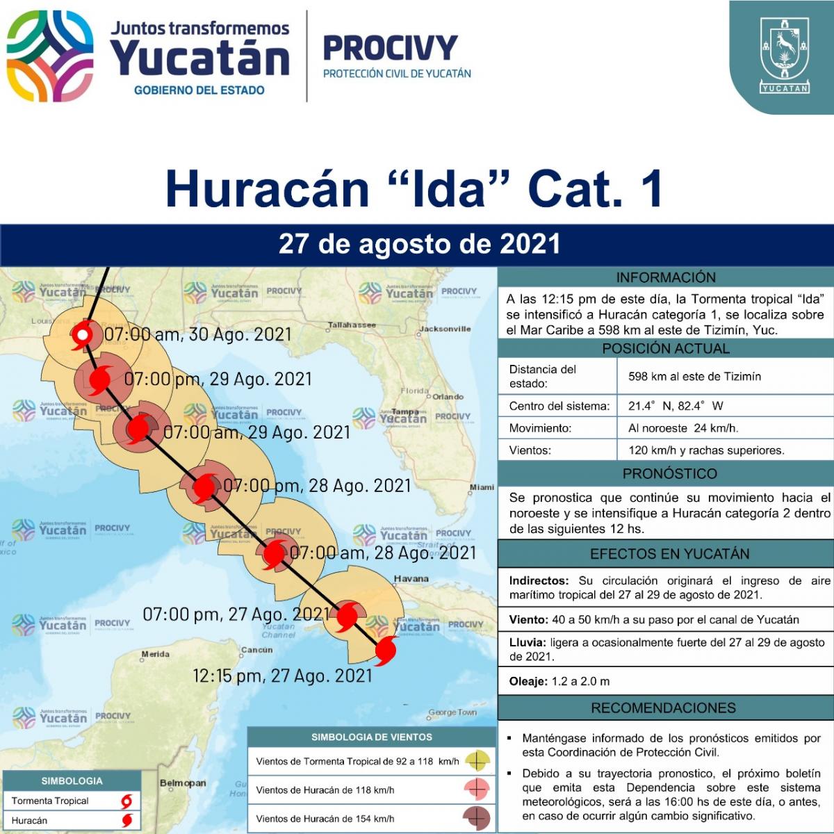 Ida continuará con rumbo al noroeste y se espera alcance la categoría 2.