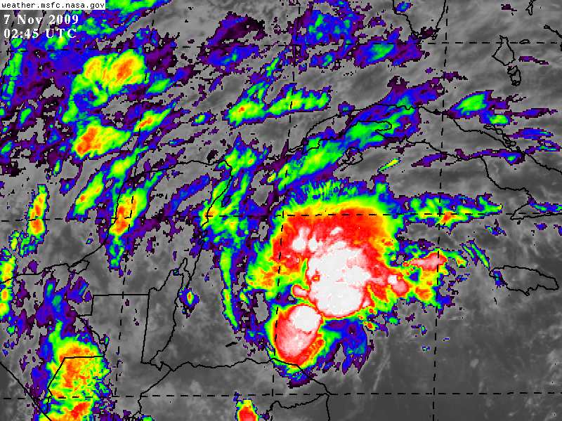 Esta noche IDA permanece con fuerza de Depresión Tropical, mientras continúa con su desplazamiento hacia el Norte, sobre el Mar Caribe, Alejandose de las Costas de Honduras.