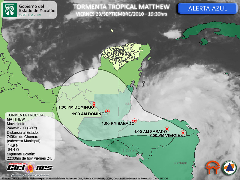 Se espera que la Tormenta Tropical continúe con su desplazamiento sobre tierras de Centroamérica durante el día de hoy viernes y mañana Sabado, disminuyendo la intensidad en sus vientos, degradandose a una Depresión Tropical, debido a las condiciones orográficas de estos países.