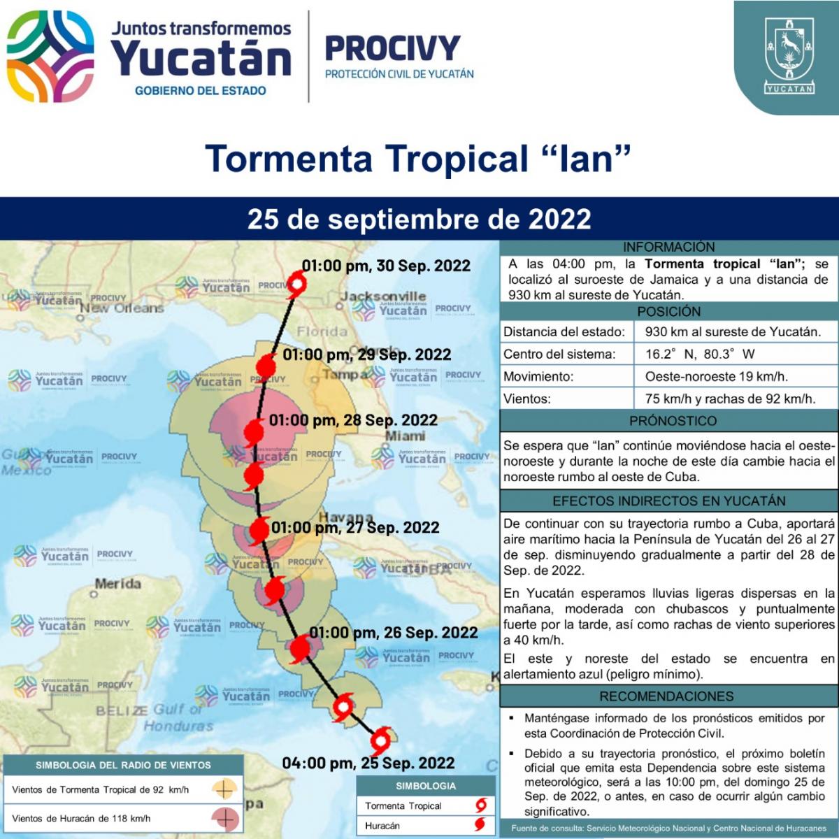 Se espera que "Ian" continúe desplazándose gradualmente hacia el noroeste donde podría intensificarse a Huracán y continuar su trayectoria hacia el oeste de Cuba.